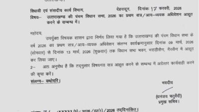 देहरादून 17 फरवरी 2026:आगामी 09 मार्च (सोमवार) से 13 मार्च (शुक्रवार) तक विधान सभा भवन,…