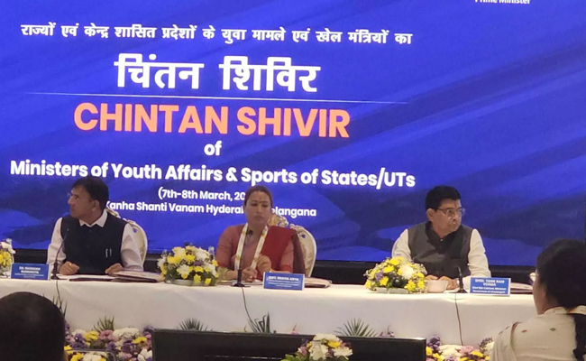 रायपुर। खेल और युवा मामलों के संबंध में देशभर के राज्यों और केंद्र शासित प्रदेशों के खेल मंत्रियों का राष्ट्रीय “चिंतन शिविर” 7 और 8 मार्च 2025 को कान्हा शांति वनम, हैदराबाद में आयोजित किया जा रहा है। युवा कार्यक्रम और खेल मंत्रालय (MYAS) के तत्वावधान में आयोजित दो दिवसीय मंथन सत्र में केंद्रीय खेल एवं युवा कल्याण मंत्री श्री मनसुख मांडविया, विभिन्न राज्यों के खेल मंत्री, खेल विशेषज्ञ और अन्य प्रमुख प्रतिनिधि शामिल हुए।