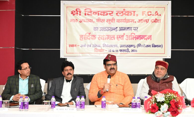 देहरादून 10 फरवरी 2026 :उत्तराखंड में बीस सूत्री कार्यक्रमों के क्रियान्वयन के लिए जिस तरह से विभाग कार्य कर रहे हैं, उसने आंध्र प्रदेश को काफी प्रभावित किया है। आंध्र की बीस सूत्री कार्यक्रम क्रियान्वयन समिति के अध्यक्ष दिनकर लंका का कहना है कि सतत विकास के लक्ष्यों को हासिल करने के लिए उत्तराखंड जो बेस्ट प्रैक्टिसेज अपना रहा है, वे बहुत अच्छी है। इन्हें आंध्र प्रदेश में अपनाने के संबंध में विचार किया जाएगा।