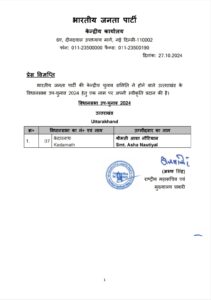 केदारनाथ उपचुनाव के लिए आशा नौटियाल होंगी भाजपा की प्रत्याशी