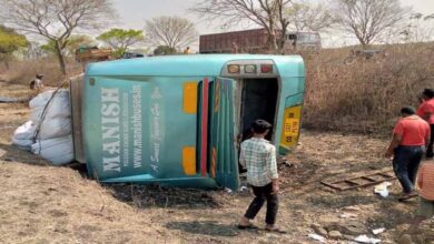दुर्ग से प्रयागराज जा रही बस एमपी में पलटी, कई यात्री घायल