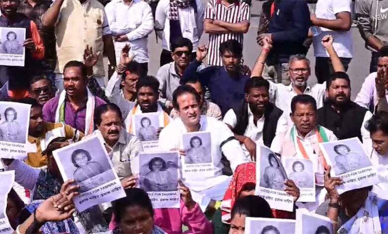 कांग्रेस ने युवती की हत्या पर किया विरोध-प्रदर्शन, लगा रहे हैं इंसाफ की गुहार