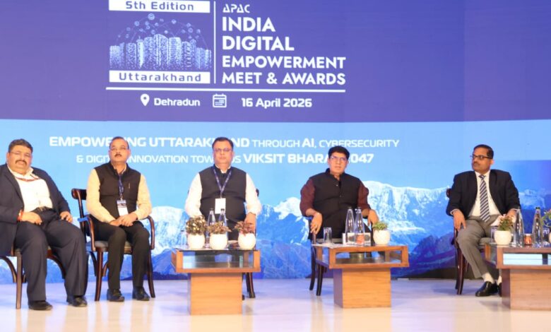 देहरादून, 16 अप्रैल । ITDA उत्तराखंड एवं APAC Media द्वारादेहरादून में 5वें इंडिया डिजिटल एंपॉवरमेंट मीट एंड अवॉर्ड्स का सफल आयोजन किया गया। कार्यक्रम की थीम “विकसित भारत 2047 की ओर एआई एवं साइबर सुरक्षा के माध्यम से उत्तराखंड का डिजिटल परिवर्तन” रही।