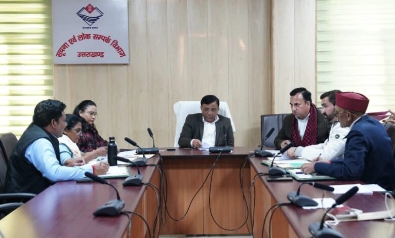 बैठक में सूचना विभाग के संयुक्त निदेशक श्री के.एस.चौहान, श्री नितिन उपाध्याय, वरिष्ठ वित्त अधिकारी श्रीमती शशि सिंह एवं समितियों के सदस्यगण श्री लक्ष्मण सिंह नेगी, श्री गिरीश तिवारी, श्री अमित शर्मा, श्रीमती शशि शर्मा उपस्थित रहे।