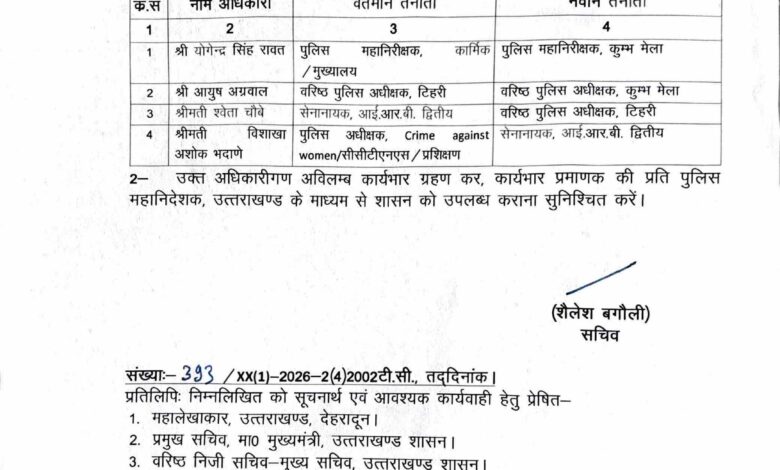 श्वेता चौबे बनीं टिहरी एसएसपी