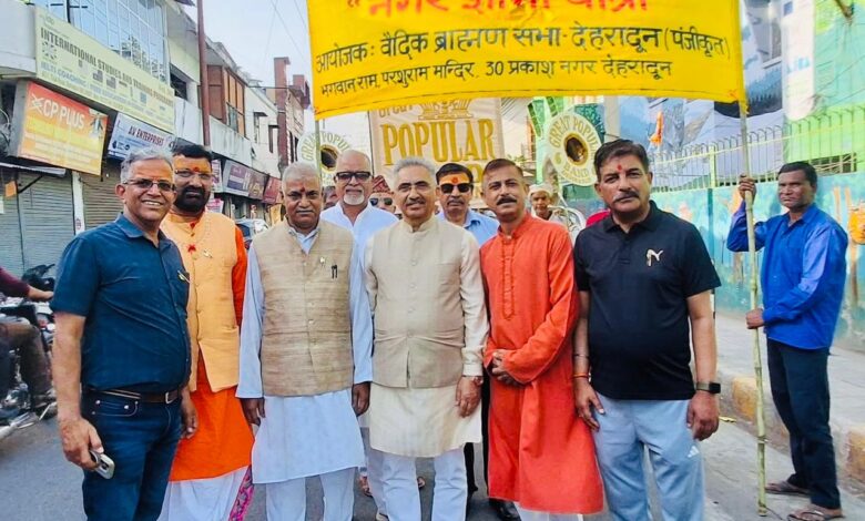 देहरादून, 18 अप्रैल : आज सांय स्थानीय प्रकाश नगर स्थित भगवान परशुराम मंदिर से वैदिक ब्राह्मण सभा द्वारा भगवान परशुराम प्रकटोत्सव शोभायात्रा नगर के मुख्य बाजारों से धूमधाम से निकाली गई।