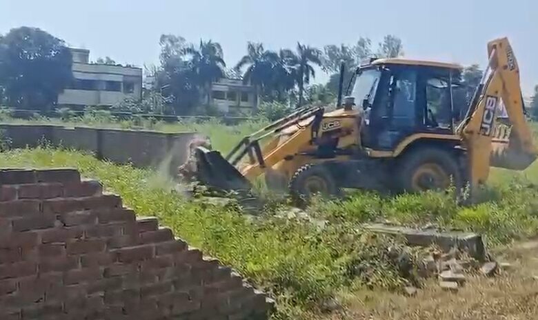 अवैध निर्माण और प्लॉटिंग पर चला एम.डी.डी.ए. का बुलडोज़र