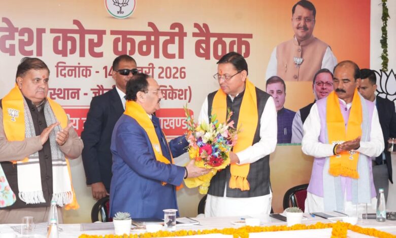 देहरादून। भाजपा प्रदेश कोर कमेटी बैठक में पूर्व राष्ट्रीय अध्यक्ष एवं केंद्रीय स्वास्थ्य मंत्री श्री जे पी नड्डा ने कोर ग्रुप की बैठक मे सरकार और कार्यकर्ताओ के बीच समन्वय पर दिया बल दिया। उन्होंने प्रदेश मे संगठन और सरकार के मध्य बेहतर समन्वय विकास कार्यों की उपलब्धियों के लिए धामी सरकार की पीठ थपथपाई। वहीं तीन बिंदुओं पर फोकस इस बैठक में 27 के चुनावों में जीत को लेकर रणनैतिक मार्गदर्शन दिया।
