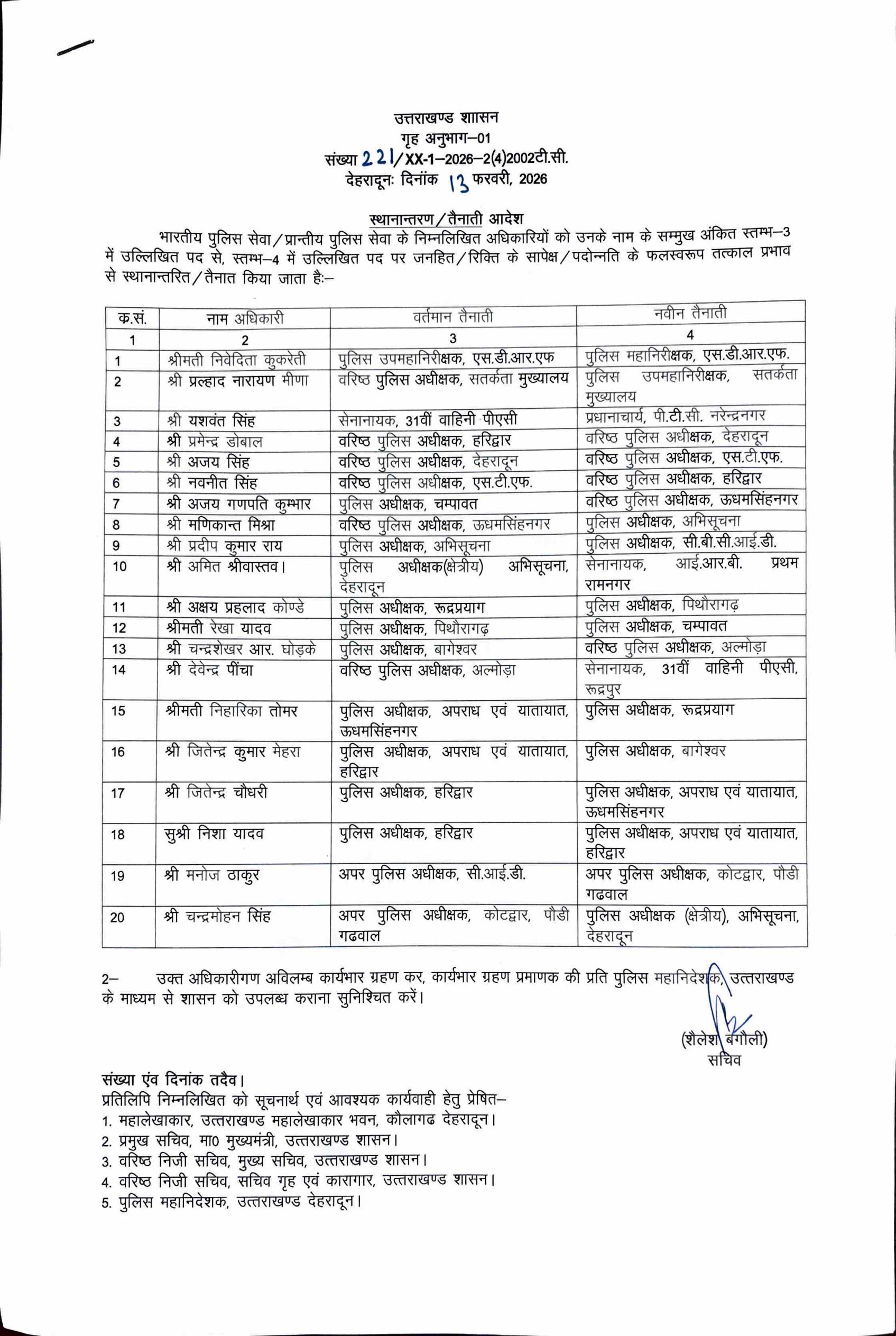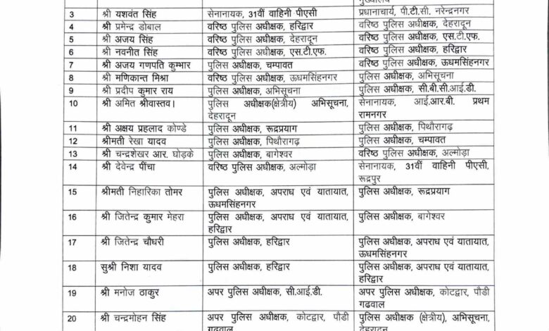 इसी क्रम में पुलिस विभाग में प्रशासनिक स्तर पर आवश्यक तबादले किए गए हैं। यह कदम पुलिस व्यवस्था को और अधिक सक्रिय, जवाबदेह और प्रभावी बनाने की दिशा में उठाया गया है।