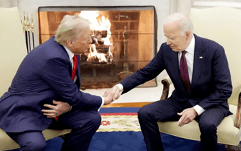 डोनाल्ड ट्रंप ने राष्ट्रपति पद के चुनाव में जीत दर्ज करने के बाद बुधवार को व्हाइट हाउस के ओवल कार्यालय में राष्ट्रपति जो बाइडन से मुलाकात की और इस दौरान दोनों नेताओं ने अमेरिकी परंपरा के तहत सत्ता के सहज हस्तांतरण का संकल्प जताया।