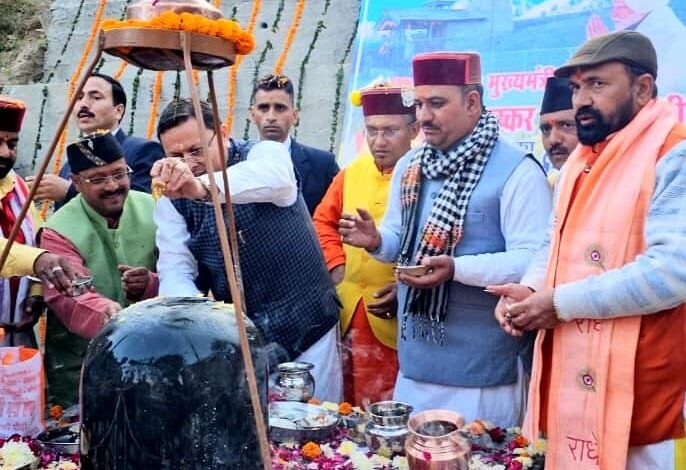 मुख्यमंत्री पुष्कर सिंह धामी लाखामंडल पहुंचे, शिव मंदिर में की पूजा-अर्चना