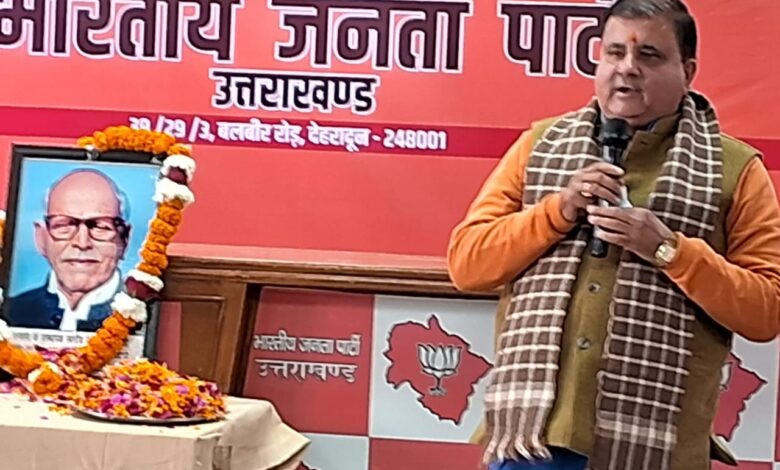 देहरादून 9 जनवरी, भाजपा एवं जनसंघ संस्थापकों में शामिल स्वर्गीय देवेंद्र शास्त्री को उनकी पुण्य तिथि पर पार्टी ने विचार गोष्ठी के माध्यम से श्रद्धांजलि दी है । इस अवसर पर प्रदेश अध्यक्ष श्री महेंद्र भट्ट ने सीएम से मिलकर स्वर्गीय शास्त्री जी के नाम से किसी स्थल के नामकरण करवाने का भरोसा दिलाया ।