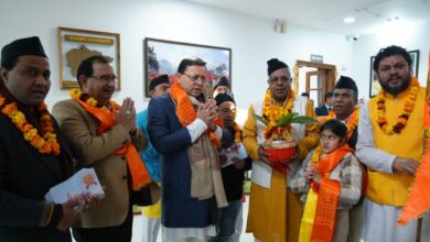 अयोध्या से लाए गए पूजित अक्षत एवं निमंत्रण पत्रक मुख्यमंत्री धामी को किये भेंट
