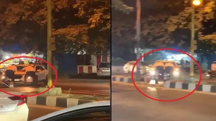दिल्ली की सड़क पर कार सवार की दबंगई, पुलिसकर्मियों को बोनट पर लटकाकर 100 मीटर तक घसीटा