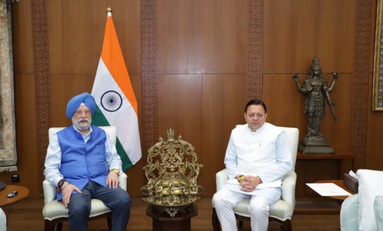 देहरादून 27 अप्रैल 2026 :मुख्यमंत्री पुष्कर सिंह धामी ने केंद्रीय पेट्रोलियम एवं प्राकृतिक गैस मंत्री श्री हरदीप सिंह पुरी से नई दिल्ली स्थित कर्तव्य भवन में भेंट कर उत्तराखण्ड की भौगोलिक परिस्थितियों एवं आपदाजन्य संवेदनशीलता के दृष्टिगत विभिन्न महत्वपूर्ण विषयों पर विस्तृत चर्चा की।