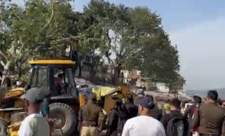 डीएम के निर्देश पर एसडीएम एवं नगर आयुक्त ऋषिकेश के नेतृत्व में चंद्रभागा में अवैध अतिक्रमण ध्वस्त