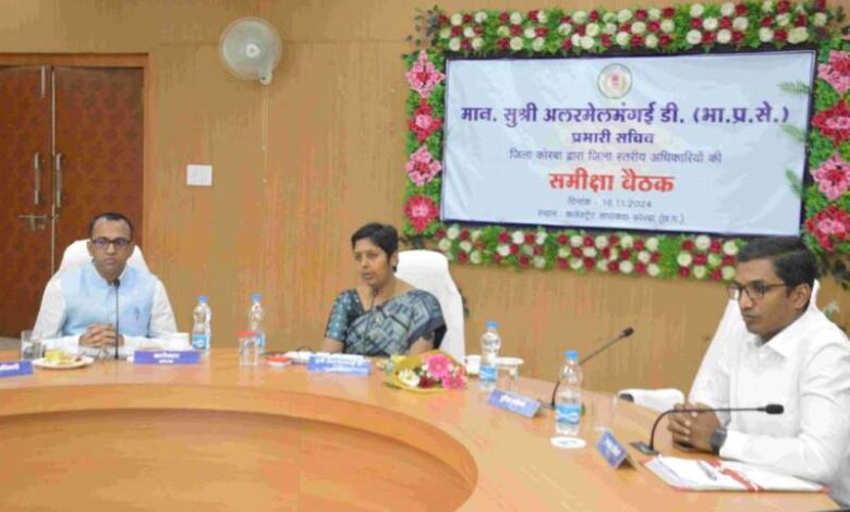 रायपुर। कोरबा जिले की प्रभारी सचिव श्रीमती अलरमेल मंगई डी ने शनिवार को कोरबा के कलेक्ट्रेट सभाकक्ष में जिले के अधिकारियों की बैठक ली। उन्होंने विभागीय कार्यों की समीक्षा करते हुए कहा कि कोरबा एक महत्वपूर्ण जिला है। यहां बड़ी संख्या में अनुसूचित जनजाति वर्ग के लोग तथा बड़ी संख्या में श्रमिक निवास करते हैं। यहां शासन की योजनाओं का क्रियान्वयन प्राथमिकता से सुनिश्चित किया जाना चाहिए। उन्होंने सभी अधिकारियों को अपनी जिम्मेदारी समझते हुए एवं आपस में समन्वय बनाकर टीम भावना से कार्य करने और कोरबा जिला को सभी योजनाओं में आगे बढ़ाने कहा। प्रभारी सचिव श्रीमती मंगई डी ने कोरबा जिले में महत्वपूर्ण स्थानों पर शिविर आयोजित करने और उनका पंजीयन कर श्रम विभाग योजनाओं से लाभान्वित करने के निर्देश दिए। उन्होंने निर्माण से जुड़े विभागों को भी श्रमिकों के हित में कार्य करते हुए योजनाओं से लाभान्वित करने कहा। इस अवसर पर कलेक्टर अजीत वसंत ने जिले में शासन की योजनाओं के क्रियान्वयन तथा डीएमएफ से स्वास्थ्य, शिक्षा एवं अन्य क्षेत्रों में किए जा रहे कार्यों की जानकारी दी। उन्होंने आश्वस्त किया कि शासन की योजनाओं का बेहतर क्रियान्वयन की दिशा में सभी अधिकारियों के समन्वय और सहयोग से कार्य करेंगे।