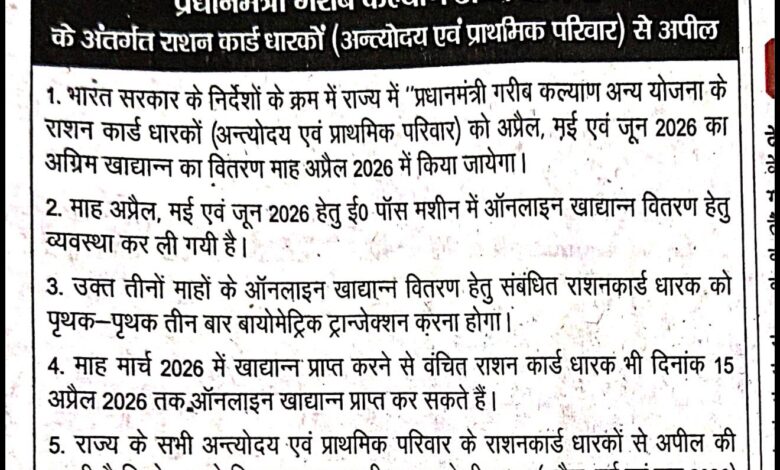 विभाग ने यह भी स्पष्ट किया है कि यदि कोई राशन डीलर अग्रिम राशन देने में कोताही बरतता है या घटतौली करता है, तो उपभोक्ता तुरंत जिला पूर्ति कार्यालय में इसकी शिकायत दर्ज करा सकते हैं।